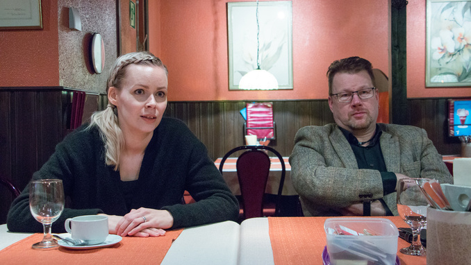 Illan kutsuvieras oli Kalajokiseudun päätoimittaja Hanna Parhaniemi. Hanna otti vastaan lehden päätoimittajan tehtävän v. 2016 syyskuussa 31-vuotiaana, jota ennen hän on työskennellyt mm. Nivala-lehden toimittajana ja myös kaupan alalla. Hannan kertoman mukaan pääsy takaisin Kalajoelle oli suorastaan lottovoitto, jota hän ei odottanut. Hanna on syntynyt Ruotsissa, josta muutti huoltamoyrittäjiksi ryhtyneiden vanhempiensa mukana Kalajoelle. Hanna on kirjoittanut ylioppilaaksi Kalajoen lukiossa. Kiinnostus lehtityöhön virisi lukioaikana, ja Hanna opiskeli medianomiksi v. 2010 ja valokuvaajaksi v. 2015. Perheeseen kuulu mies, tytär, poika ja kolme kissaa.