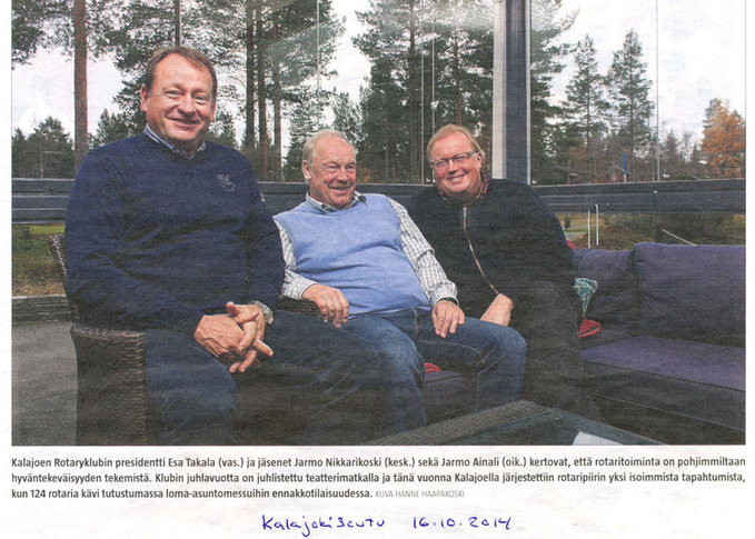 Rotarien toimintapäivän merkeissä presidentti Esa Takala, past.presidentti Jari Nikkarikoski ja nuorisovaihtoasiamies Jari Ainali antoivat Kalajokiseudulle haastattelun aiheesta. Lehtijutussa kerrottiin klubin toiminnasta ja Rotarien kansainvälisestä nuorisovaihdosta sekä kuulutettiin vapaaehtoisia isäntäperheitä.