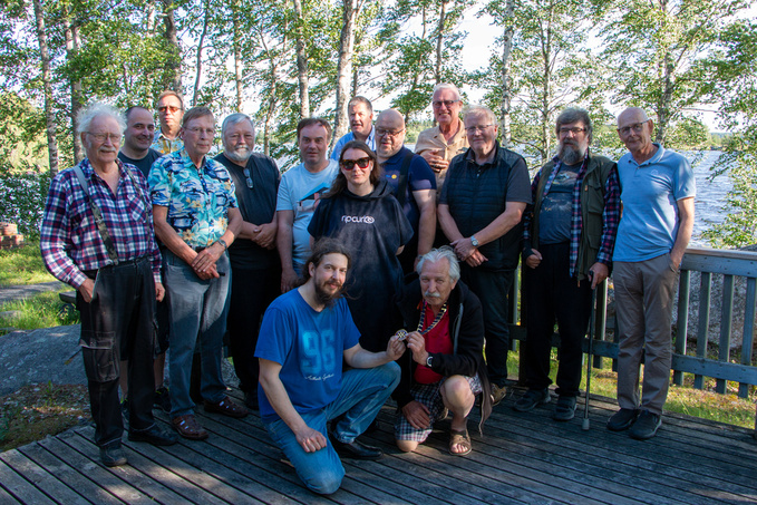 Presidentin vitjojen vaihto tapahtui Leppikarvon majalla 29.6.2024. Kesäisen lauantai-illan menoista huolimatta 25 klubin jäsenestä 16 ennätti paikalle - mukana kaksi kunniajäsentä. Yhdellä osallistujalla oli kiire synttäreilleen, eikä ehtinyt kuvaan.