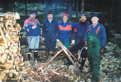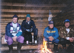 ![]() Näin lähtee vanha laavu, kun puikoissa on Marko Paavola. Laavu siirrettiin ulkotulipaikan eteen. |